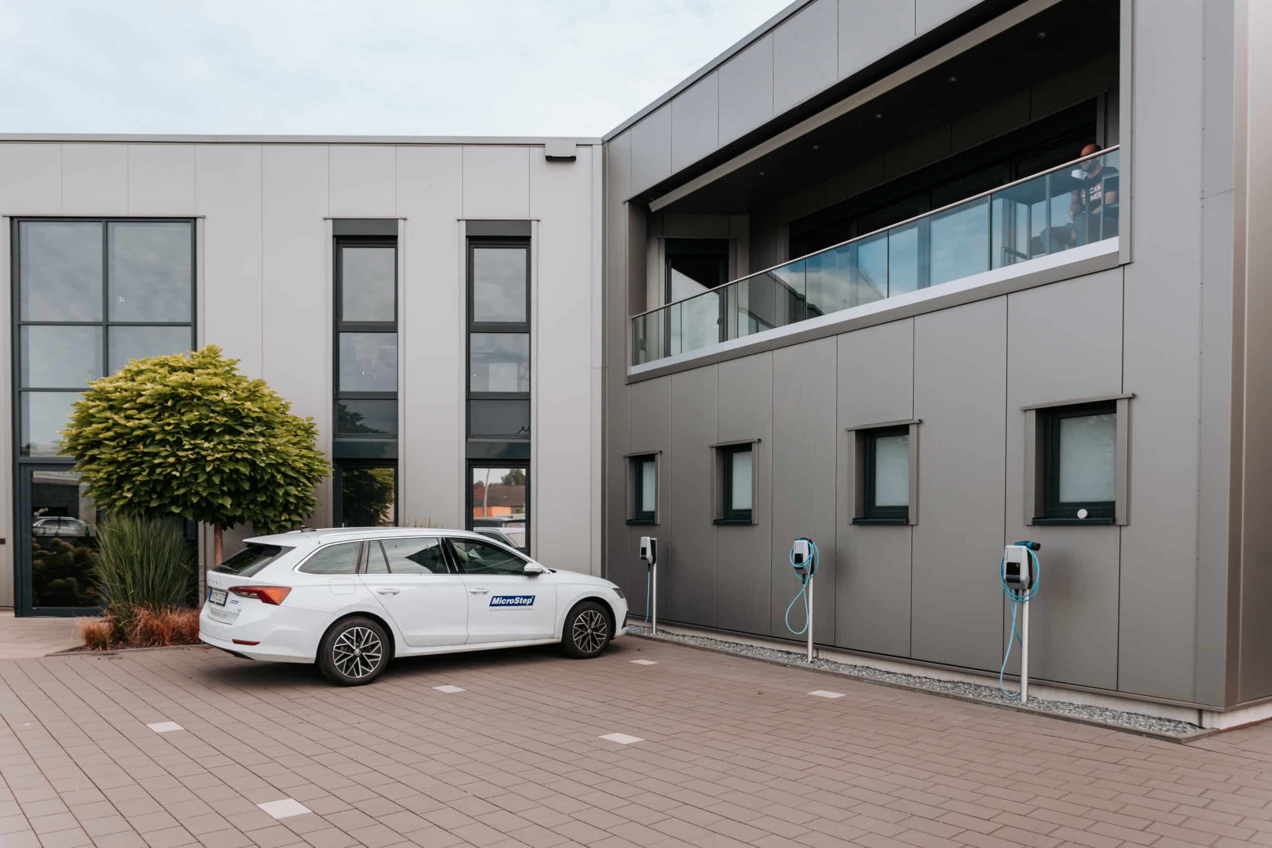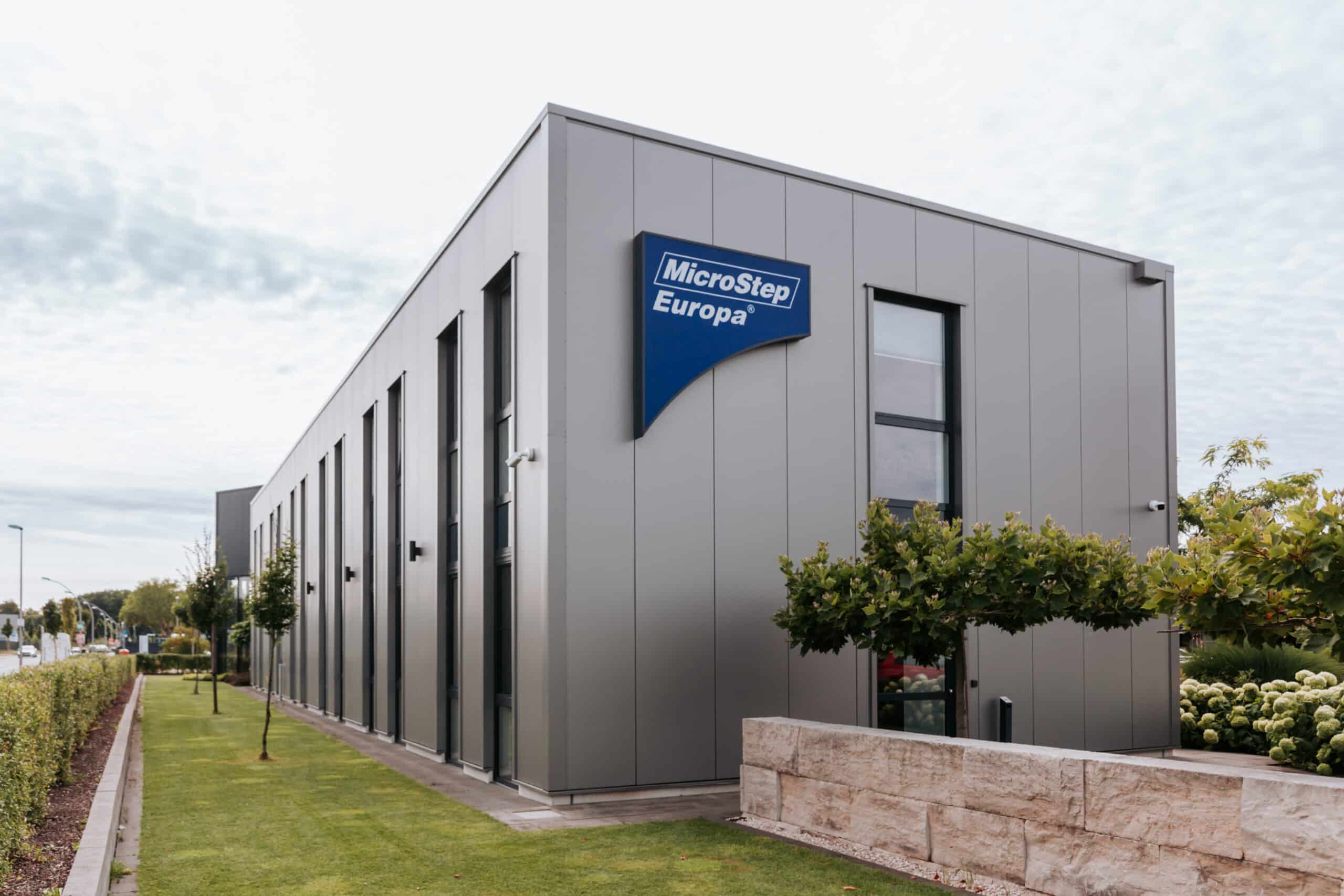 Die besondere architektonische Handschrift zeigt sich in der dynamischen Kubatur, dem präzisen Farbkonzept und einer Außenanlage, die das hochwertige Erscheinungsbild des Neubaus harmonisch abrundet. Das Ergebnis ist ein moderner, repräsentativer Standort, der sowohl funktional als auch gestalterisch überzeugt und den Anspruch von MicroStep als technologischen Innovationsführer sichtbar macht.